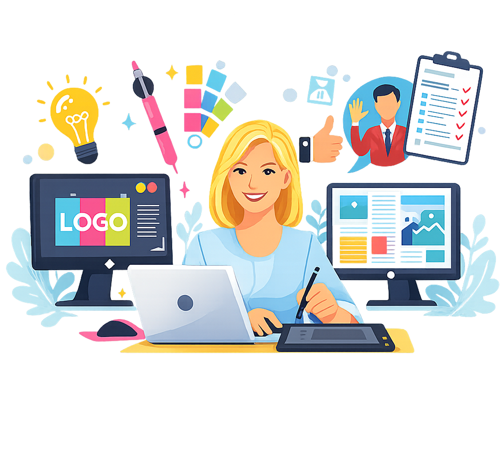 Naast webdesign verzorgen wij ook een breed scala aan grafische ontwerpen voor online en print. Wij helpen bedrijven om hun merk professioneel en herkenbaar te presenteren.